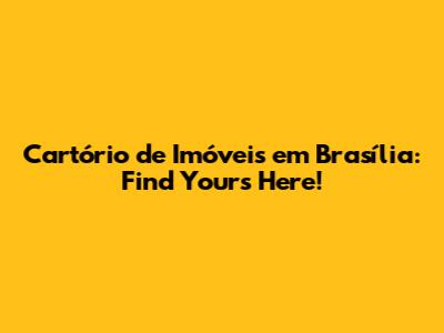 Cartório De Imóveis Em Brasília: Find Yours Here!