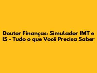 Doutor Finanças: Simulador IMT E IS Explicado