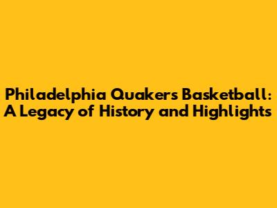 Philadelphia Quakers Basketball: History & Highlights