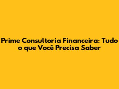 Prime Consultoria Financeira: Tudo O Que Você Precisa Saber