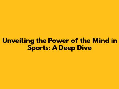 Unveiling The Power Of The Mind In Sports: A Deep Dive