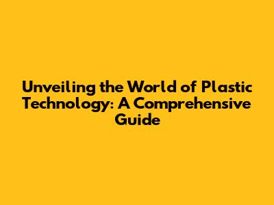 Unveiling The World Of Plastic Technology: A Comprehensive Guide