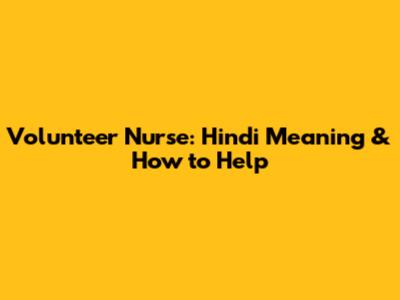 Volunteer Nurse: Hindi Meaning & How To Help